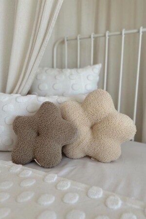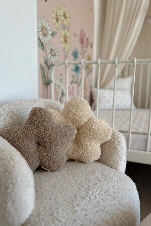 Bebek ve çocuk odası dekorasyonunda kullanılabilir. Çiçek şeklindedir. İkili üründür. Ölçüler: Krem Renk 28x28 cm Gri Renk 24x24 cm Hardal Renk 24x24 cm Krem-Açık Kahverengi 24x24 cm Bebek fotoğraf çekimlerinde aksesuar ve yastık olarak kullanılabilir. %100 Organik Welsoft(Teddy) kumaş İçi elyaf dolgudur. El yapımı olması sebebi ile ölçülerde farklılıklar olabilir. Elde yıkama yapınız. Hediye olarak Bez Kese içerisinde gelmektedir . Toplu siparişlerde büyük bez kese içerisinde gelmektedir.