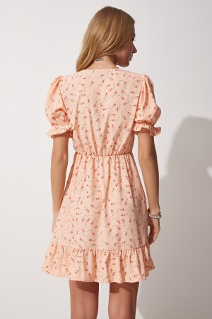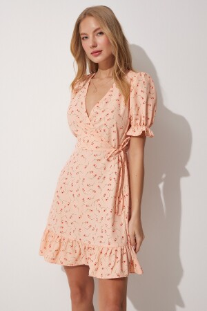 Rüschenärmel aus 100 % Polyester – gebundener Wickelkragen – versteckter Gummizug in der Taille ungefüttert – gewebtes Kleid ohne Unterwäsche Produktlänge: 85 cm Ärmellänge: 25 cm Farben können aufgrund von Lichtunterschieden bei Studioaufnahmen variieren. Höhe: 1,73 cm – Brustumfang: 79 cm, Taille: 60 cm, Hüfte: 90 cm