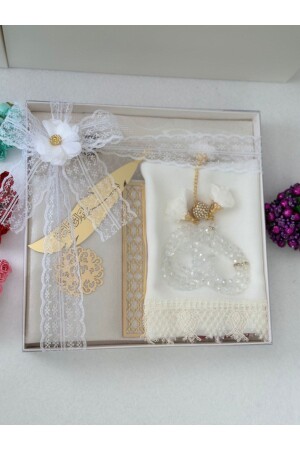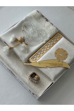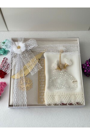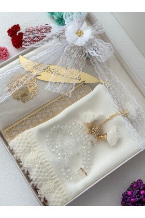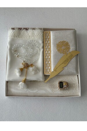 Markapolin ev tekstili Çeyizlik- Hediyelik- 6 parça Gelin Bohçası Seti-1 adet iğne Oyalı Namaz Örtüsü- 1 adet Tafta Seccade-1 adet kristal Tesbih-1 adet kitap ayraç 1 Adet taşlı zikirmatik 1 adet yasin şerif KUTU İÇİNDEBULUNAN ÜRÜN ÖZELLİKLERİ TAFTA SECCADE ÖZELLİKLERİ Lüks Tafta Seccade ( 70x120cm Ağırlık:280 gram- Ebatı: 70 cm x 120 cm- Hafif ve İnce Yapısından Dolayı Taşıması-Kullanması Kolaydır. Lüks Sınıfta Yer Alan Bir Ürünümüzdür. Parlak İpliktenİmal Edilmiştir. ŞİFON ŞAL ÖZELLİKLERİ iğne oya görünümünde makina oyası multi şifon şal ölçüsü eni 65 x155 cm ebatlarındadır krep dökümlü olarak imal edilmiştir kenarlarıiğne oyalı olarak süslenmiştir 30 derece elde yıkama ve kuru temizleme tavsiye edilir KRİSTAL TESBİH ÖZELLİKLERİ Kristal güllü tesbih 99`lu Güllü cam Kristal Tesbih 8 mm İmamesi taşlı İşlemelidir. TAŞLI ZİKİR MATİK ÖZELLİKLERİ: Swaroski Taşlı Elektronik Yüzük Zikirmatik (Numaratör) 5 Hanelidir 99999'a Kadar Sayar Parmağa Yüzük Gibi Takılarak Zikir Çekilebilir. LCD Ekranlı Hafızalıdır- Bıraktığınız Sayıdan Zikrinize DevamEdebilirsiniz Yasin-i Şerif Ürün Özellikleri : 12x16 cm Ebatında Çanta Kadife Kaplı 128 Sayfa Yasin Lüks- Kadife Kumaş ile Özel Olarak Kaplanmıştır Bilgisayar Yazılı- Okuması Kolay Hat Arapça - Meâl ve Türkçe Okunuş Gül Desenli İç Sayfalar Çanta Boy 12 cm x 16 cm 128 Sayfa İthal Kağıt (2.Hamur) Lazer Yöntemiyle Kesilmiş Aynalı Pleksi Allah Lafzı Kadife Kaplı Yasinlerimizin Tamamında Sayfaların Hasar Görmesini ve Kaplanan Kadife Kumaşın Sabit Durmasını Sağlayan Koruyucu Köşe Demirler Mevcuttur Kutu ebatları ağırlık ve özellikleri Genişlik 25 eni 25 yükseklik 4 ebatlarındadır Kutu içerisinde ürünlerle birlikte kargoya hazır şekilde 0-750gr ağırlığındadır Görselde görülen kutu hediye çantasıyla birlikte kartonkutuda gelir