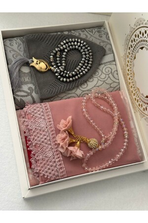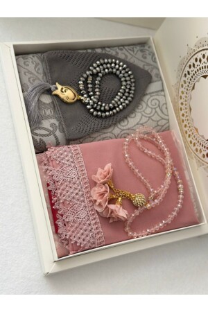 Gelin damat bohçası hediyelik seccade seti kutu içerisindeki ürünler 2 adet tafta ipek seccade 1 adet multi şifon şal namaz örtüsü 1 adet namaz takke 1 adet güllü kristal tesbih 1 adet laleli kristal tesbih ürünler hediye kutusunda gönderiyoruz ürün görselde görüldüğü gibi gelir