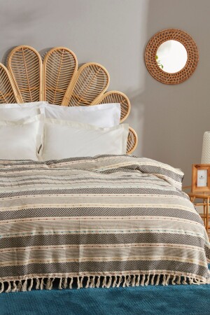 Antrasit-gri Çizgili 4 Katlı Müslin Yatak Örtüsü- 2 Adet Yastık Kılıfı TYC00801668484