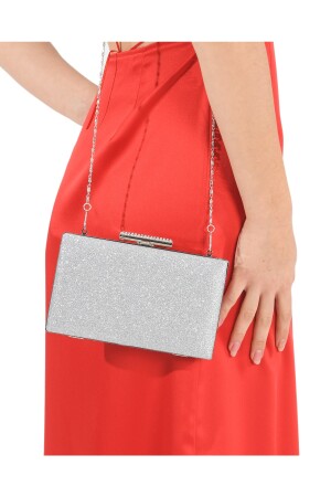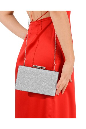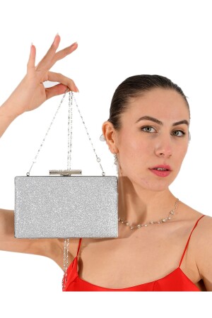Gümüş Lame Renk Simli Abiye Çanta Gece Çantası Düğün Çantası 135T Kumsim