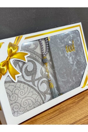 Hediyelik Bohçalık Tafta Saçaklı Gri Seccade Yasin Tesbih Seti