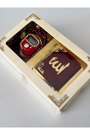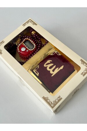 Hediyelik Çeyizlik Kutulu Mini Kur'an-ı Kerim Tesbih Ve Taşlı Zikirmatik Setimiz Bordo