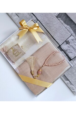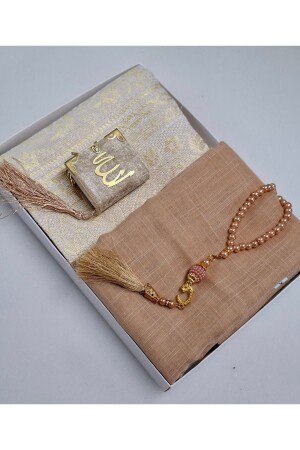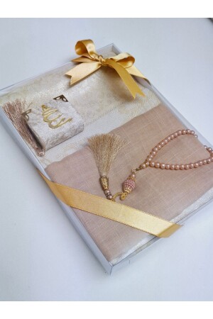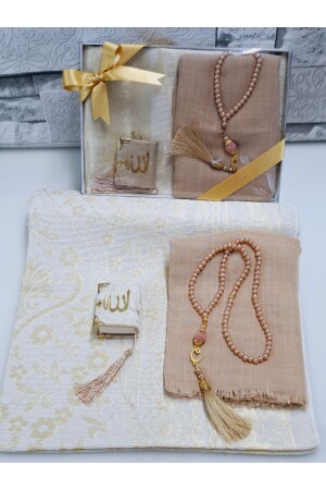 ÜRÜN İÇERİĞİ Hediyelik Seccade Mini Kuran Flamlı Eşarp ve Tesbih Seti: Asetat kutu içerisinde İnci Tesbih 99'luk Vavlı Mini Kuran Flamlı Başörtüsü ve Tafta Seccade ile beraber sunulur. Doğum Günü- Nişan Hediyeliği- Çeyizlik- Anneler Günü- Hac Umre hediyeliği Bohça ve Mevlid hediyeliği amacıyla rahatlıkla kullanılabilir.