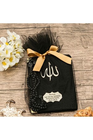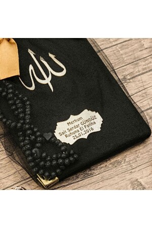 Hediyelik Kadife Yasin Cüzü (ÇANTA BOY)- Kalpli Tesbih- Tül Keseli Mevlid Paketi-siyah