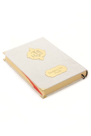 Hediyelik Türkçe Mealli İsme Özel Orta Boy Kadife Kaplı Kuranı Kerim Beyaz