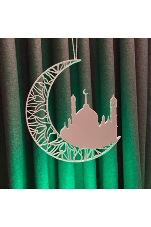Produktabmessungen: 19 cm Breite / 20 cm Höhe / 0–52 mm Tiefe. Unser Produkt wird mit einem 3D-Drucker aus biologisch abbaubarem organischem PLA-Material (Kunststoff) hergestellt. Sie können dieses Dekorationsobjekt, das Moschee- und islamische Motive in einer Mondsichel enthält, mit doppelseitigem Klebeband auf geeignete Oberflächen kleben oder es als Tür-/Fensterschmuck verwenden, indem Sie es am Ende mit einem Seil festbinden.