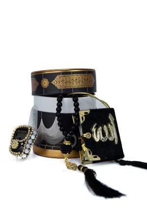 Mini Silindir Kutulu Mevlit Hediye Seti Siyah (mini Kuranı Kerim-inci Tesbih 99)