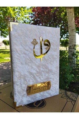 Isme Özel Hediyelik Çeyizlik Gelin Kuran'ı Kerim'i; Kadife Kaplama Beyaz