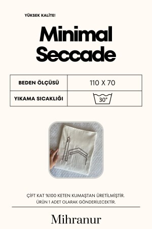 Keten Kabe İşlemeli Minimal Seccade ve Namazlık - Bohça- Çeyiz ve Günlük Kullanıma Uygun Seccade. %100 Organik Keten Kumaştan Üretilmiştir. Mis gibi kokusuyla namazınızı güzelleştirir. Sade ve şık tasarımı ile her ortama uyum sağlar. Yumuşak ve doğal keten kumaşı ile cildinize konfor sunar. Hafif ve taşınabilir olması ile seyahatlerde de kullanılabilir. 70x110 cm ölçüsü ile standart seccade boyutlarındadır. Geniş dikilmiştir ve çekme payı göz önünde bulundurulmuştur. Makinede yıkama ve kurutma uygun değildir. Elde soğuk suda veya kuru temizleme ile temizleyiniz. Yüksek ısı ve devir kumaşın yapısını bozabilir. Seyahat ve günlük kullanıma uygundur.
