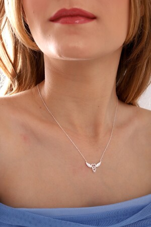 925 سبرينغ الفضية سلسلة من النساء ملاك قلب جناح واحد حجر عنق