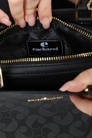 Kadın Siyah Çapraz Ayarlı Askılı Klinkır Kumaş Postacı Omuz Çantası