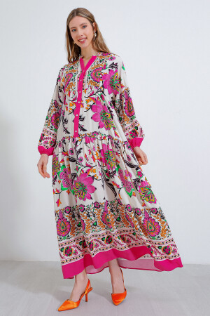 Ürün Içerigi % 100 Viskoz Ürün özellikleri: Otantik Desenli Elbise Model Bilgileri Bedeni : 38 Ürün Boyu: 136 cm Kol Boyu: 60 cm Manken Ölçüsü : Boy:176 Gögüs:90 Bel:63 Basen:94 Genel Yikama ve Kullanma Talimatlari Yikamada ürünü bozmamak için 30 C'yi asmayiniz Ürünü yikarken yikama talimatina uygun olarak yikayiniz Renkli ürünlerde uygun deterjan kullaniniz