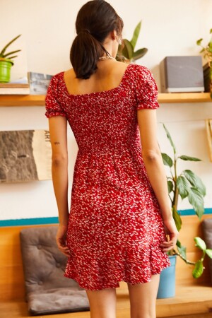 Kadın Kırmızı Gipeli Yakası Bağlamalı Kloş Elbise ELB-19001190
