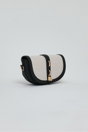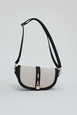 Kadın Siyah Çapraz Ayarlı Askılı Klinkır Kumaş Postacı Omuz Çantası