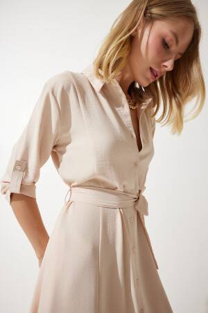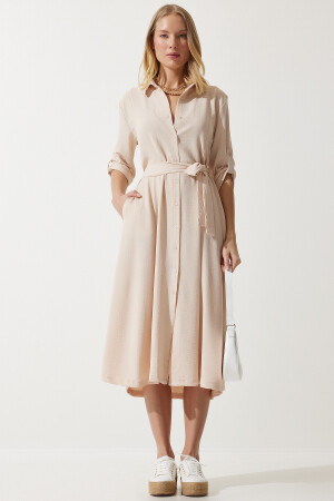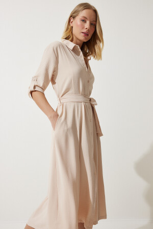 %70 Pamuk %30 Polyester Düğme kapamalı- 4/3 ayarlanabilir kol- astarsız- yanlardan cepli- kuşaklı gömlek elbise Ürün Boyu: 120 cm Kol Boyu: 40 cm Stüdyo çekimlerinde renkler ışık farklılığından dolayı değişiklik gösterebilir. Boy: 1.73 cm- Göğüs: 79 cm Bel: 60 cm Kalça: 90 cm
