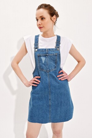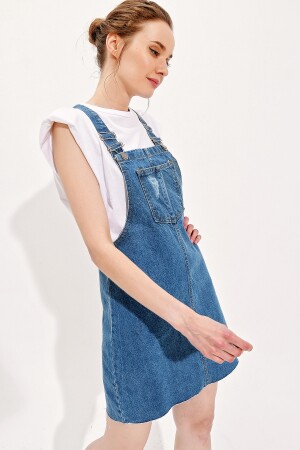 Kadın Mavi Askılı Cepli Jean Salopet ALC-X6193