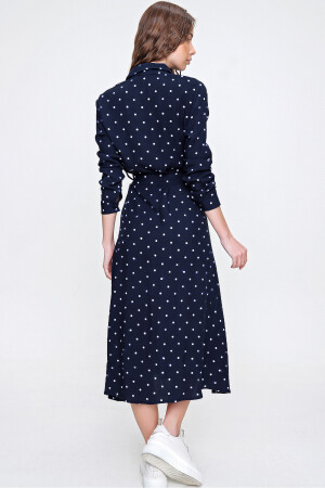 Kadın Okyanus Mavisi Puantiye Desenli Dokuma Viscon Gömlek Elbise ALC-X6247