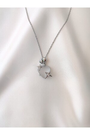 Taşlı kalpli Çelik kolye Portakal çiçeği yağı hediyeli