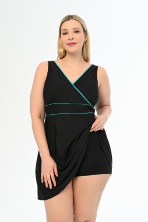 Schwarz-Aquagrüner Alesta-Kleid-Badeanzug in Übergröße für Damen mit Shorts