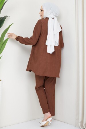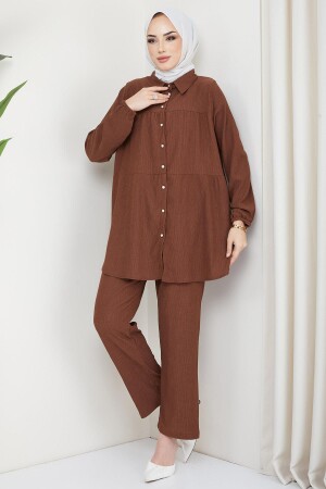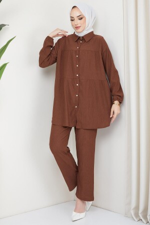 Kat Gömlekli Bürümcük İkili Takım Kahverengi Özellikleri Kumaş Özelliği : Bürümcük kumaştan üretilmiştir. Ürün Özelliği : Yeni sezon Kat Gömlekli Bürümcük kuaştan üretilmiş tunik ve pantolondan oluşan Tesettür İkili Takım modelidir. Bisiklet yakalıdır- kol ucu lastiklidir. Pantolonun beli lastiklidir. Ürün renginde konsept çekimlerinden dolayı ton farklılığı olabilir. Yıkama Talimatı : 30 derecede sıktırmadan yıkanabilir. Mankenin Üzerindeki S Bedendir. S Beden Ölçüleri Tunik Ürün Boyu: 82 cm Göğüs : 120 cm Bel : 124 cm Basen : 140 cm Kol : 62 cm Pantolon Ürün Boyu: 99 cm Bel : 80 cm Basen : 104 cm Mankenin Ölçüleri Boy: 172 cm Göğüs : 90 cm Bel : 67 cm Basen : 95 cm Kilo : 64 Kg Her beden ölçüsü bir öncekinden 4 cm büyüyerek artmaktadır. (Ürün boyu değişmez)
