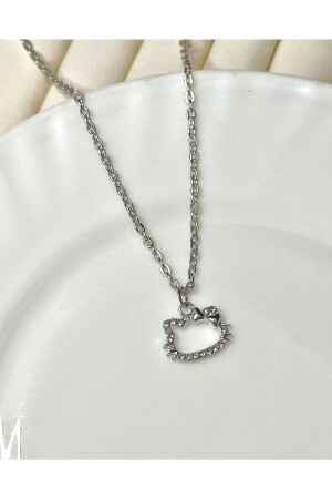 Kedi Zirkon Taşlı Parlak Kolye