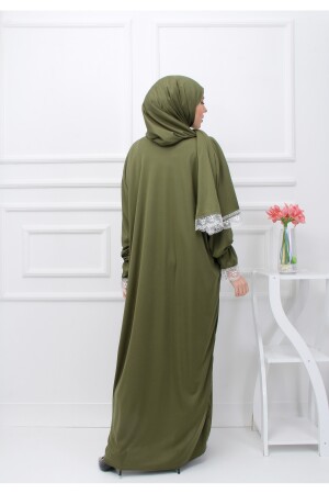 Kendinden Başörtülü Dantelli Kadın Namaz Elbisesi