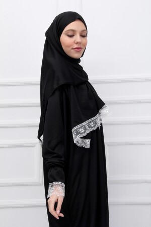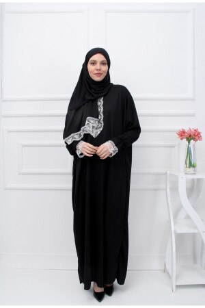 Kendinden Başörtülü Dantelli Kadın Namaz Elbisesi