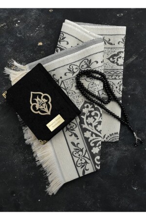 Kişiye Özel Kadife Siyah Kuranı Kerim & Seccade & Inci Tesbih Set