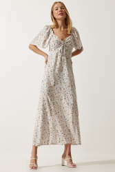 Langes, gepunktetes Kleid mit Ballonärmeln und quadratischem Ausschnitt