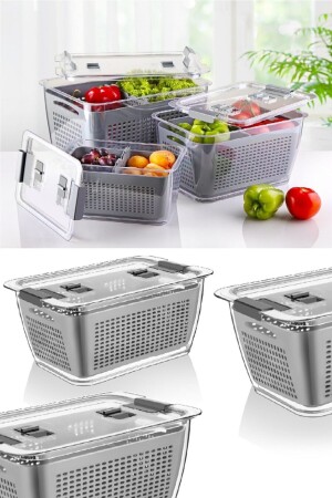 3-teiliger Kühlschrank-Organizer mit mehrschichtigen Fächern 2,5 l / 5 l / 9 l