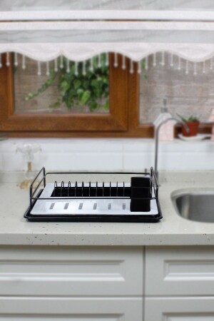 HİMYHOME EINSCHICHTIGER SCHWARZER GESCHIRRSORGANIZER PRODUKTMERKMALE: -Dieses Produkt mit Kristalltablett wird mit seinem stilvollen und einzigartigen Design der Star Ihrer Küche sein. - Das Kristalltablett ist zerlegt. Durch Waschen mit Essigwasser wird der maximale Glanz erreicht. -Das Produkt besteht vollständig aus Metall und wird nach dem Backen bei 350 bis 400 °C mit einer Thermoplastbeschichtung versehen. Unsere mit Thermoplast beschichteten Produkte sind äußerst beständig gegen Rost und Verformung. PACKUNGSINHALT: -Geschirrständer -Kristalltablett -Löffelhalter aus Kunststoff -Untersetzer aus Kunststoff (Wassersammler) PRODUKTABMESSUNGEN: *Länge:40,5 cm Breite:35,5 cm Höhe:11,5 cm*