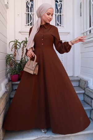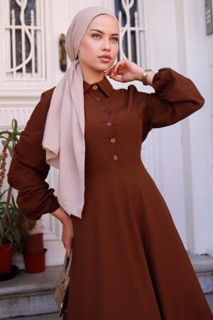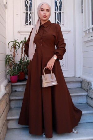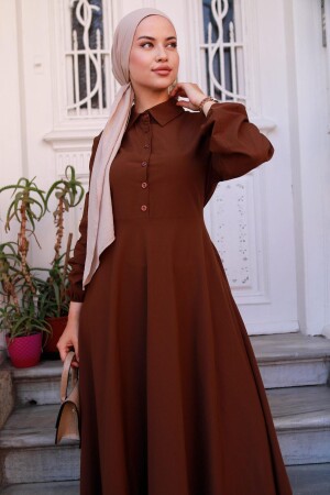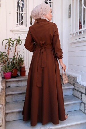 Kuşaklı Mevlana Elbise Kahverengi Özellikleri Kumaş Özelliği : Terikoton kumaştan üretilmiştir. Ürün Özelliği : Yeni sezon Kuşaklı Mevlana Tesettür Elbise modelidir. Önden düğme ile kapanmaktadır. Gömlek yakalı- manşeti lastiklidir. Kuşak sabittir ve astarsızdır. Ürün renginde konsept çekimlerinden dolayı ton farklılığı olabilir. Yıkama Talimatı : 30 derecede sıktırmadan yıkanabilir. Mankenin Üzerindeki 38 Bedendir. 38 Beden Ölçüleri Ürün Boyu: 140 cm Göğüs : 96 cm Bel : 92 cm Manken Ölçüleri Boyu: 168 cm Göğüs : 80 cm Bel : 60 cm Basen : 100 cm Kilo : 55 Her beden ölçüsü bir öncekinden 4 cm büyüyerek artmaktadır. (Ürün boyu değişmez) .