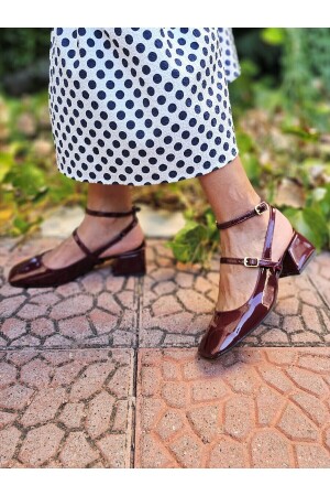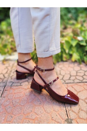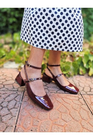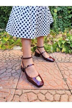 Mary Jane Burgunderrote Vintage-Schuhe aus eckigem Lackleder mit stumpfer Zehenpartie und dickem Absatz