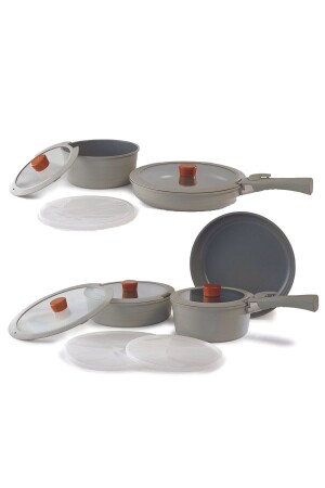 Midas Grau (9 Teile & 6 Teile) 15-teiliges ineinandergreifendes Töpfe- und Pfannenset mit abnehmbarem Griff MIDAS