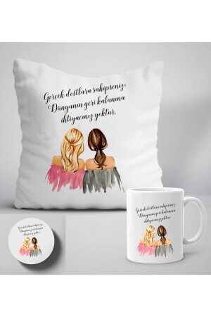 MNZ-إذا كان لديك أصدقاء حقيقيون.مكتوب رسم المرأة المطبوعة هدية وسادة+مغ+كوستر مجموعة Y111