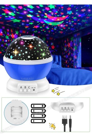 MNZ-أزرق تدور القمر الملوّن نجم السماء الإشارة الليل الضوء الأطفال غرفة حفلة الأطفال BLUE0241