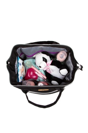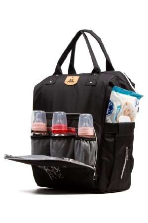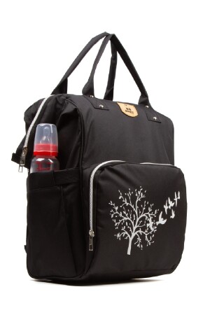 Biberon Termoslu Sıvı Geçirmez Puset Askı Aparatlı Siyah Füme Çizgili Anne Bebek Bakım Sırt Çantası