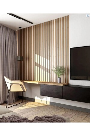 MNZ-Scandinavian Wall Lath (THICKNESS 4MM) 1 حزمة من 5 قطع 100x8cm لوحات جدارية ليت