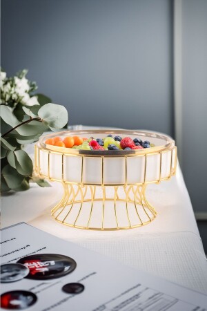 كأس مقاس كبير من طراز MNZ مع ساقي معدنية وتفاصيل ذهبية - عرض - خدمة - كأس السلطة