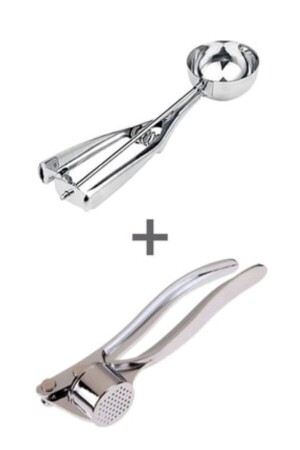 يشتمل على: 1 محطم للثوم من الفولاذ المقاوم للصدأ (14 سم) و 1 كوب من الآيس كريم من الفولاذ المقاوم للصدأ (22 × 6