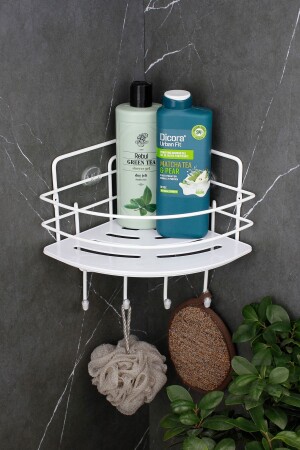 MNZ-الصدأ الأسلاك البيضاء حامل الشامبو الملصقة المرتبط الحمام رف الزاوية مع رف الكريستال