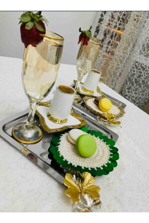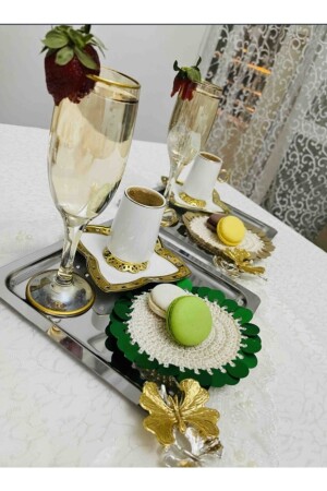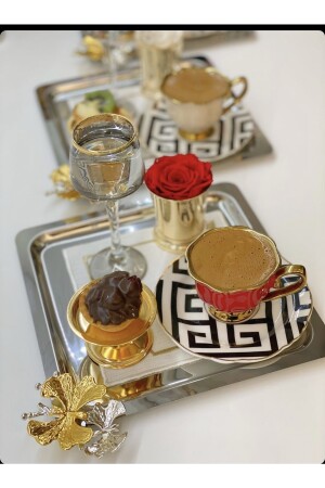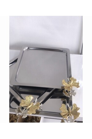 Lüx Kare Kelebek Aksesuarlı Paslanmaz Çelik 6’lı Gümüş Kahve, Çay, Dekoratif Sunum Servis Tepsisi MZKBK667