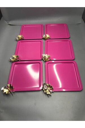Lüx Kare Kelebek Aksesuarlı Paslanmaz Çelik 6’lı Gümüş Kahve, Çay, Dekoratif Sunum Servis Tepsisi MZKBK667