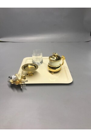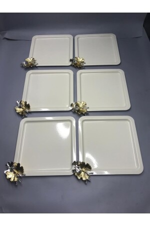 Lüx Kare Kelebek Aksesuarlı Paslanmaz Çelik 6’lı Gümüş Kahve, Çay, Dekoratif Sunum Servis Tepsisi MZKBK667