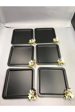 Lüx Kare Kelebek Aksesuarlı Paslanmaz Çelik 6’lı Gümüş Kahve, Çay, Dekoratif Sunum Servis Tepsisi MZKBK667