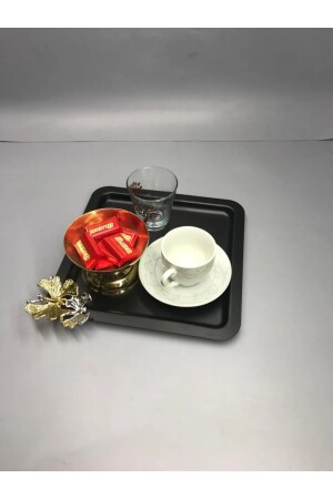 Paslanmaz Çelik Kare 6lı Aksesuarsız Çay Kahve Sunum Tepsisi