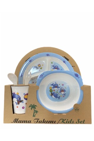 MNZ-الطفل طعام الصفائح دلفين شكل مجموعة من 5 الميلامين مربع MM4421234