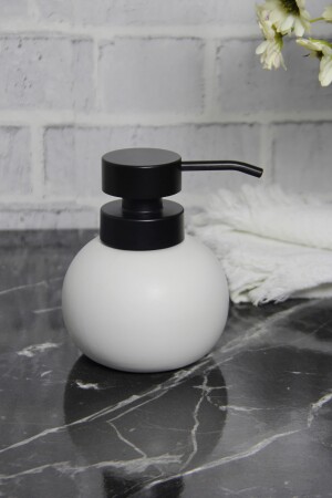MNZ-الفخامة البورسلين الأبيض Chubby السائل صابون الموزع، المزق مع كأس أسود. 193